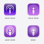 En las imágenes que he adjuntado sobre estas líneas se puede apreciar cómo han ido cambiando los iconos de las aplicaciones más importantes de Apple a lo largo de los últimos años. Aplicaciones como Música antes se llamaban de otra forma y a día de hoy muchos diseños son completamente diferentes.